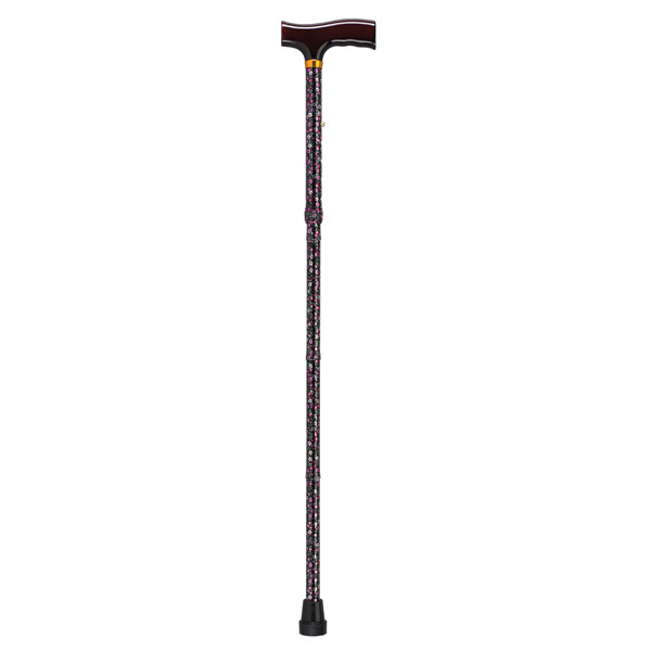 This lightweight adjustable aluminum folding cane with T Handle by Drive Medical is great for individuals on the go. The cane easily folds and unfolds with out tools, making storage or travel convenient. As an added bonus this cane comes with a handy carry holster which keeps the cane folded when not in use. The handle height adjusts in 1" increments from 33" to 37" allowing for personal sizing. Available in a great designer color this cane provides style and quality all in one. The premium grade wood handle is contoured to increase hand comfort and provide safety. This cane includes a plastic carry case and can withstand a weight capacity of 300 lbs.