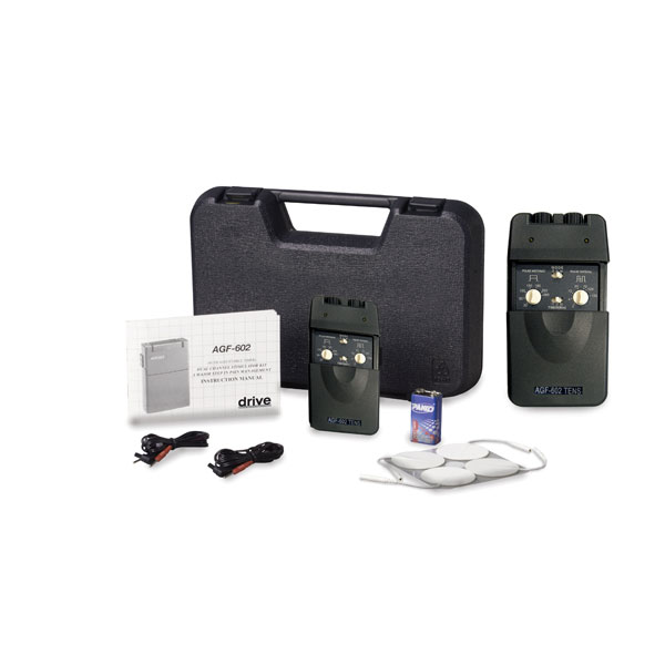 Packed with features the dual channel TENS unit with timer and electrodes by Drive Medical provides maximum therapy making it the ultimate in pain management. The mild electrical waves are delivered using analog technology to provide a high quality signal through the electrodes. The adjustable timer allows you to set treatment times based upon your needs. Dual isolated channels allow for independent adjustment of each lead wire allowing for various adjustments to ensure proper treatment as instructed by a therapist or doctor. The analog signals can be adjusted to deliver three different wave forms: asymmetrical, bi-phase and square pulse. The modulation selector offers 3 modes of wave delivery: Normal, Burst and Modulation mode. The TENS unit is lightweight, portable and can be attached by a clip. It comes complete with a carrying case, 2 lead wires, a 9-volt battery, 1 package of pre-gelled electrodes and an operating manual.